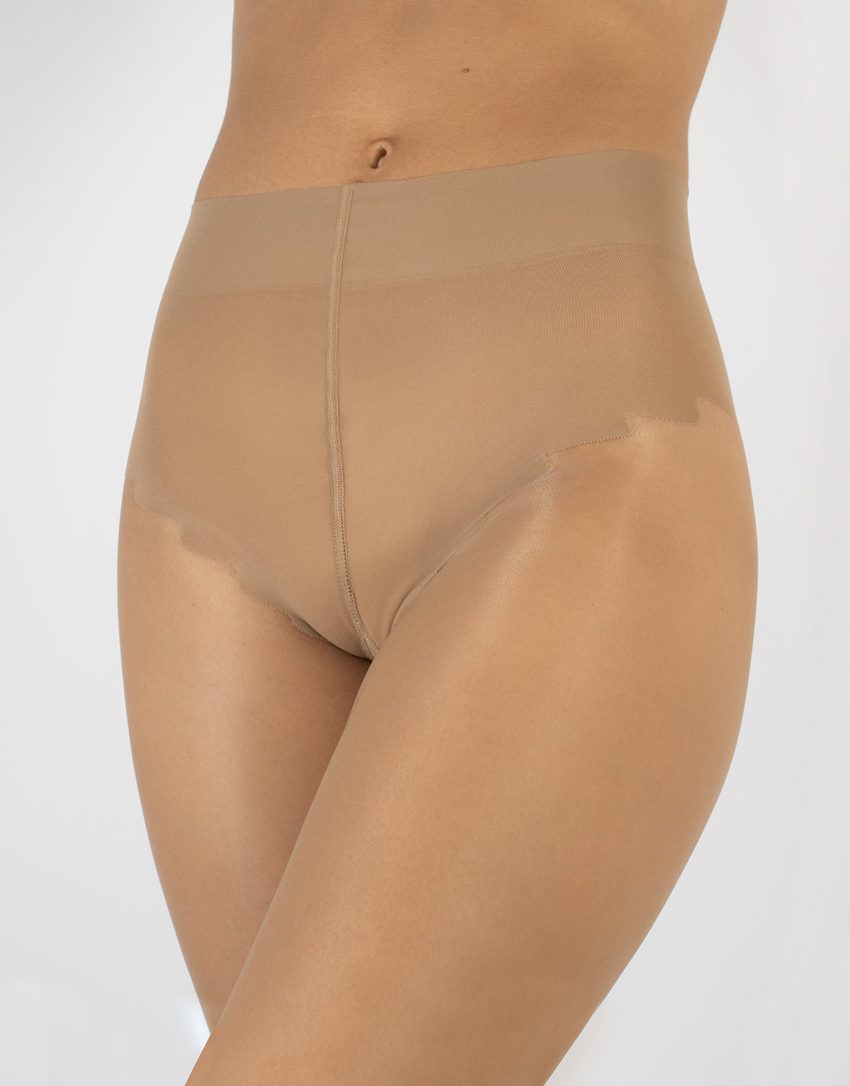 Cienkie rajstopy o delikantym satynowym połysku, z elegancką, wysoko wyciętą częścią majteczkową i szerokim, elastycznym wykończeniem w talii zapewniającym idealny komfort noszenia.