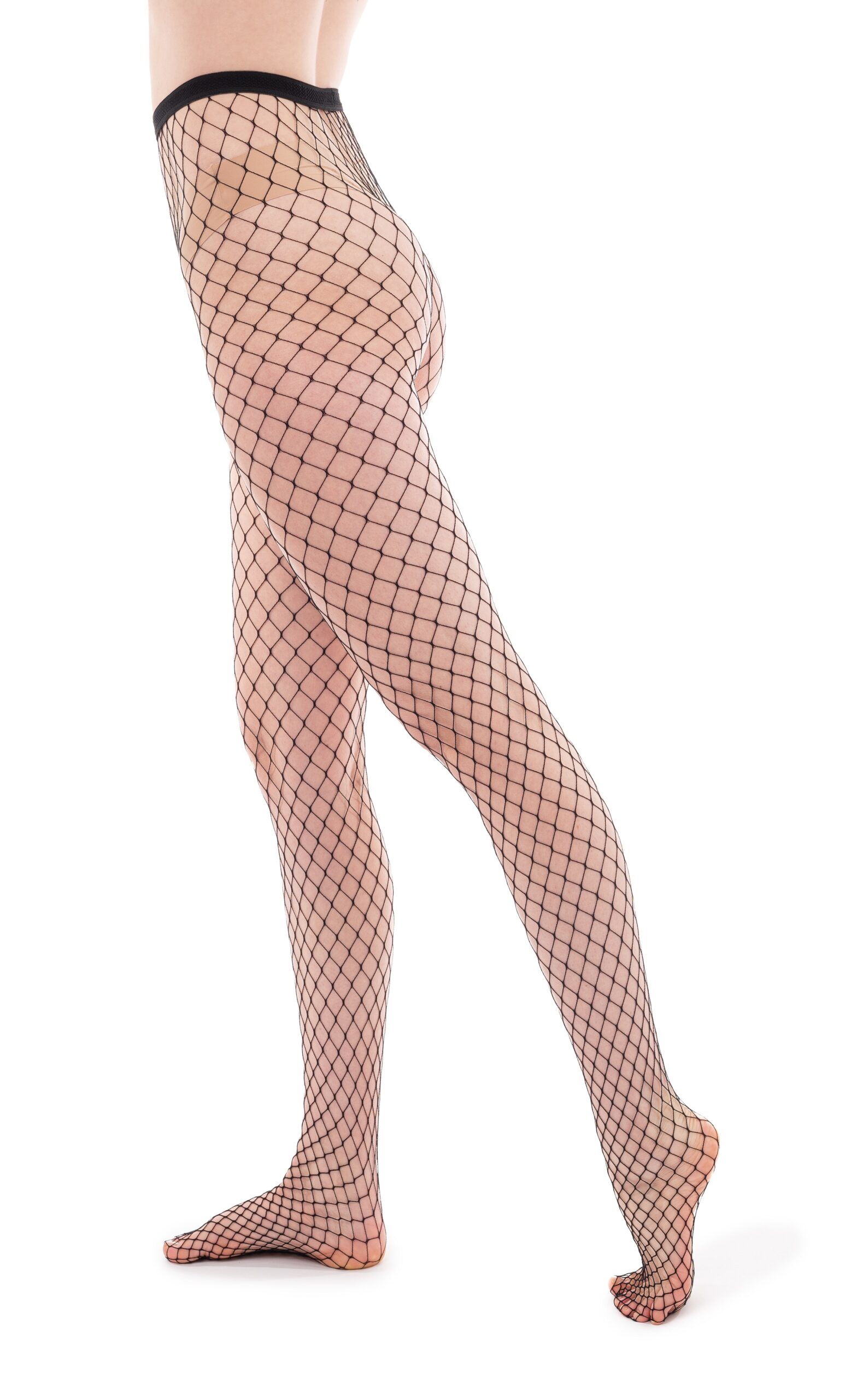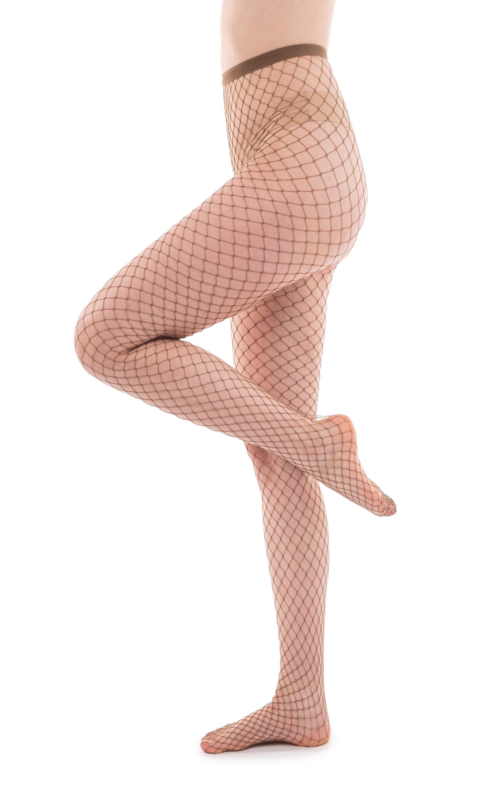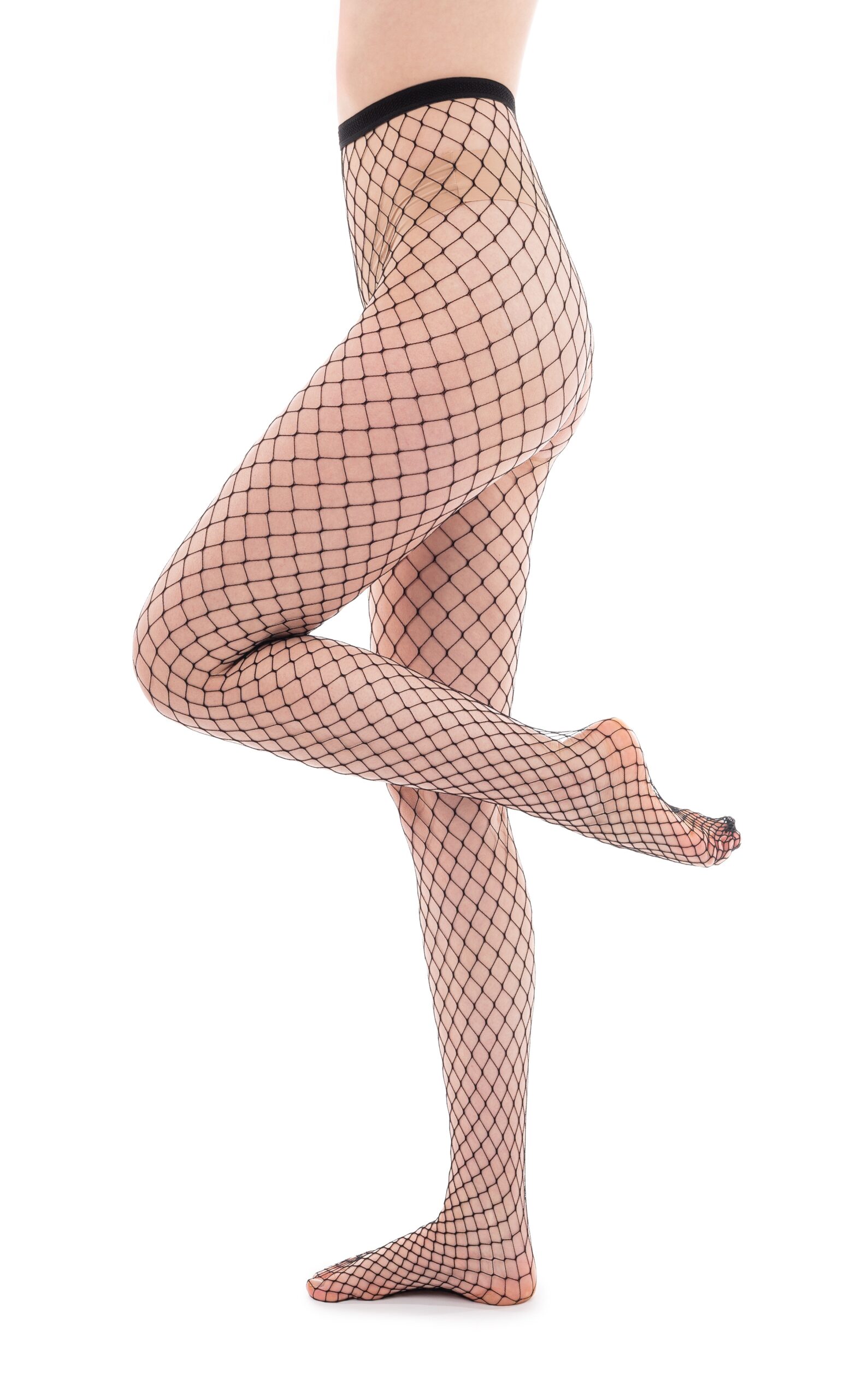 Rajstopy kabaretki z modnymi, bardzo dużymi oczkami.