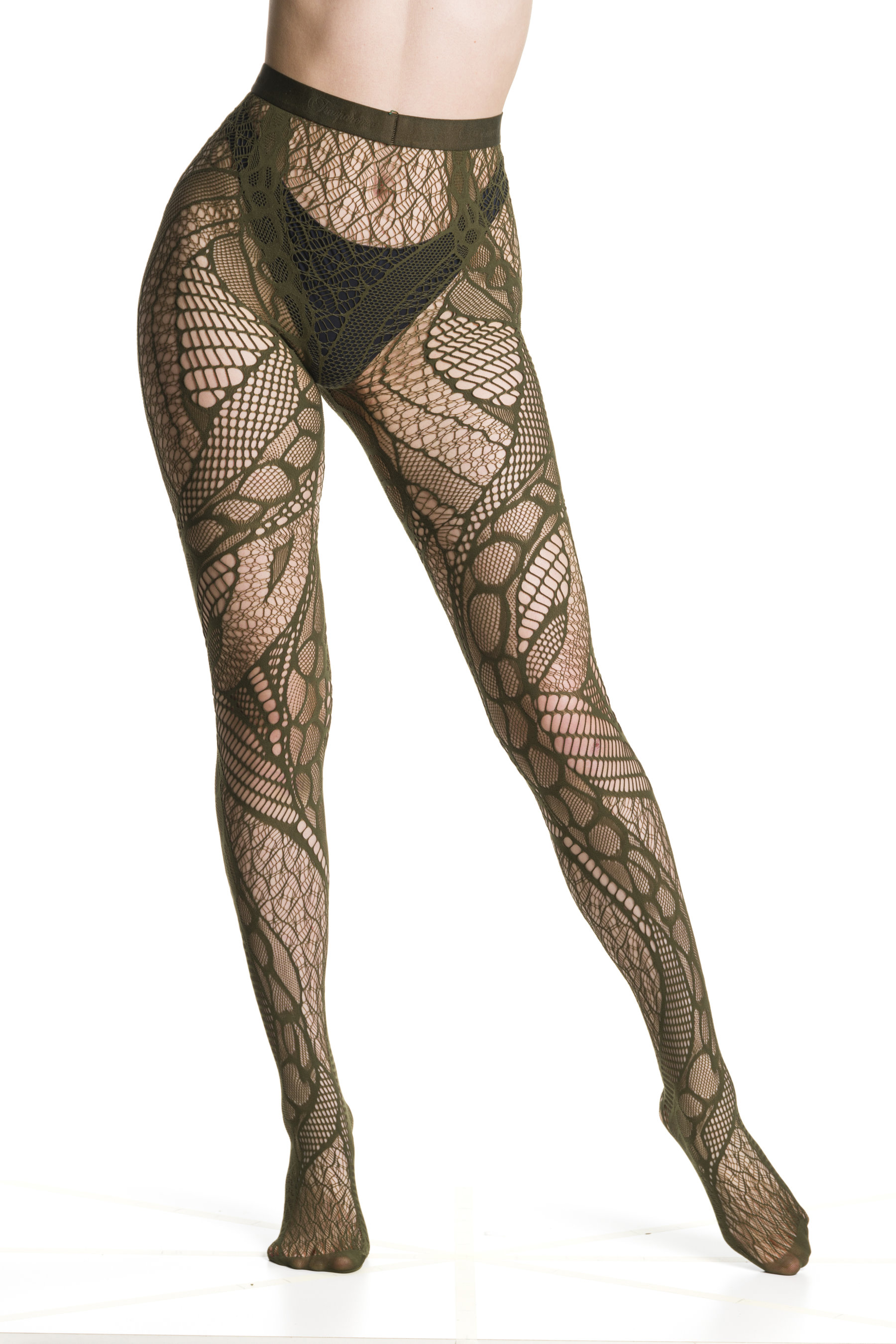 - Miękkie rajstopy kabaretki z patchworkowym wzorem imitującym koronkę.