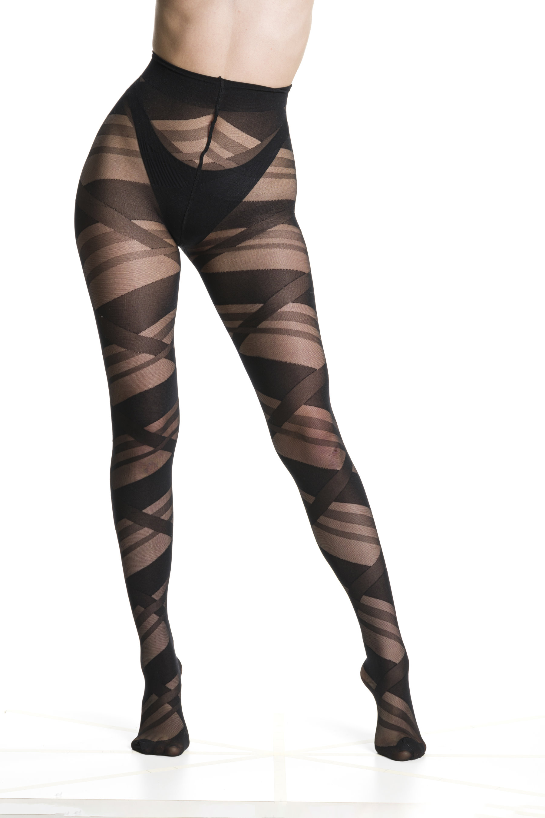 Giulia - Cienkie rajstopy z wyrafinowanym wzorem w przeplatające się pasy