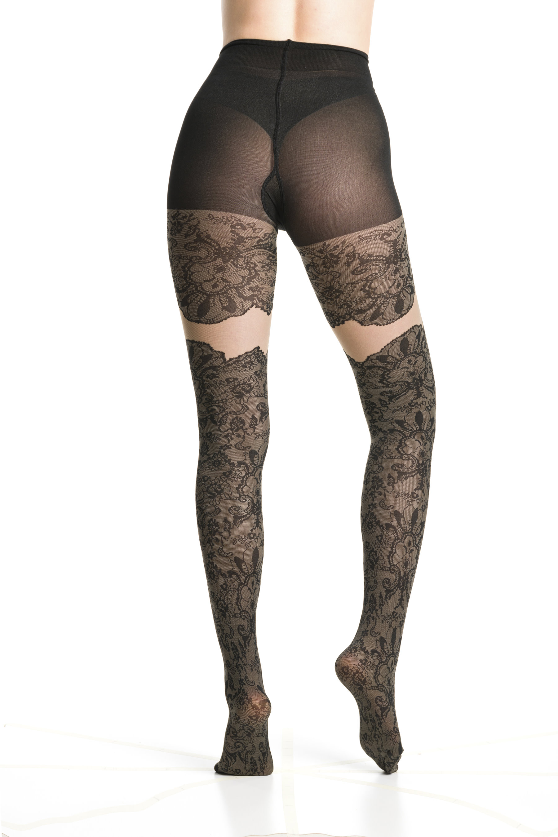 Ekskluzywne rajstopy z pięknym uwodzicielskim wzorem imitującym pończochy i eleganckim koronkowym motywem - z limitowanej kolekcji firmy Trasparenze!
